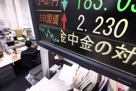 19日の東京債券市場で、長期金利の指標となる新発10年物国債の流通利回りが2.230%に上昇(債券価格は下落)した。1999年2月中旬以来、約27年ぶりの高水準=東京都中央区 【時事通信社】