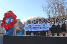 同日、万博の会場跡地で開催された「ミャクミャク旅立ちセレモニー」では、抽選で選ばれた大阪府内在住の約1000人が詰めかけた。定員1000人に対して約167倍の応募があったという。ダンスグループ「アバンギャルディ」と大阪府広報担当副知事を務めるキャラクター「もずやん」がダンスパフォーマンスを披露した。