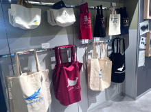 グッズは約200種類。新商品は、ジンベエザメやカリフォルニアアシカの刺しゅうをあしらったタオルハンカチ(1,200円)やミニトートバッグ(1,800円)、生き物たちをかたどった「お絵描き定規」(1,600円)など。ショッパーの提供終了に合わせ、ジンベエザメなどのイラストを描くトートバッグ(700円)や折り畳みバッグ(1,650円)などバッグ類も新たにそろえる。このほか、雄と雌の2種類のジンベエザメのぬいぐるみ(4,000円)や異なる絵柄を重ねた「3ポケットクリアファイル」(500円)など定番商品もそろえる。