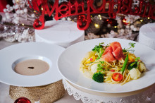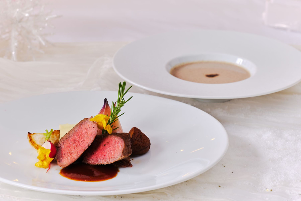 期間中、「無限列車」を舞台に展開するVRジェットコースター「鬼滅の刃 XR ライド」開催に合わせて、「鬼滅の刃」の世界観を楽しめる2つのコラボレストランを展開。オリジナルメニューを用意する。