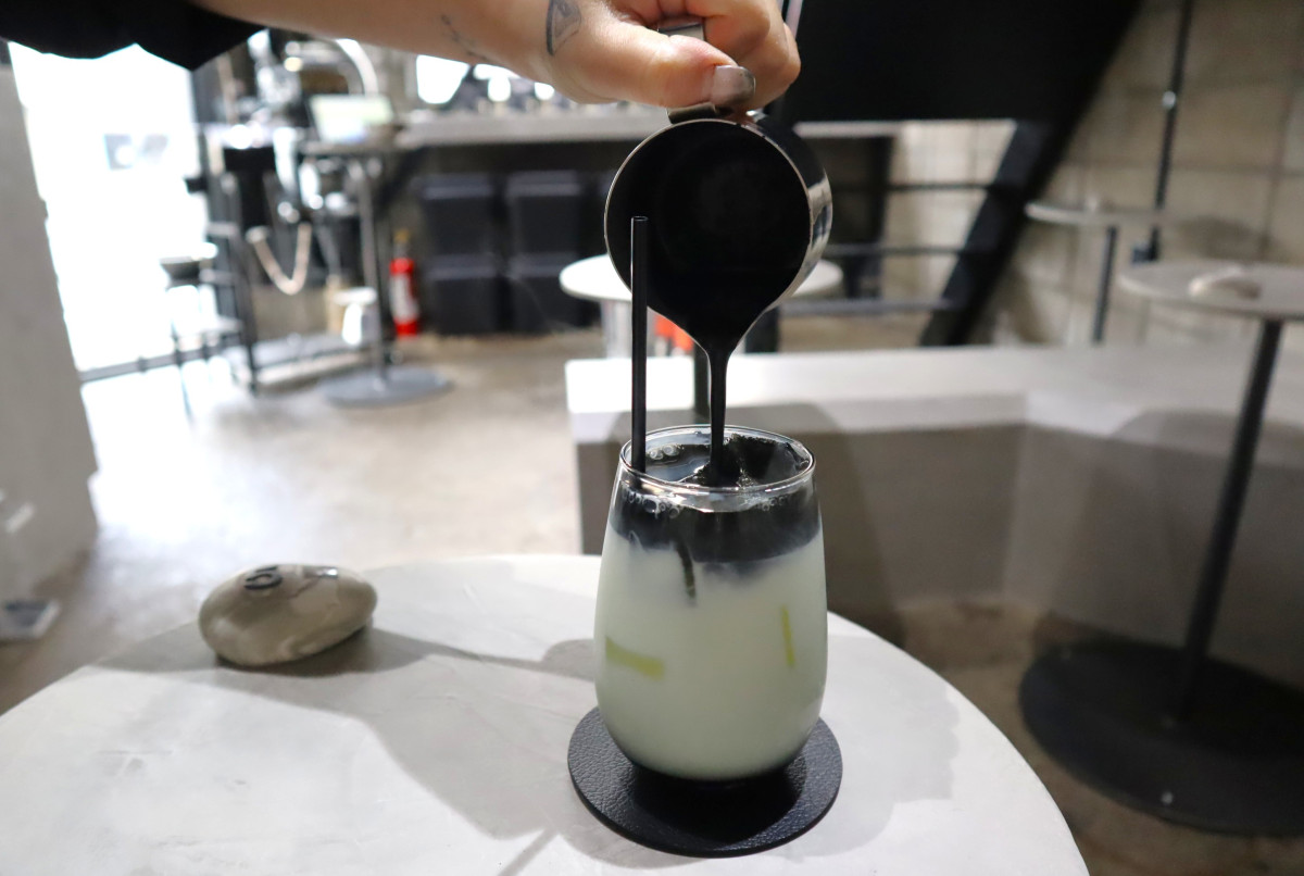 「黒・ラテ」は目の前で注ぐ
