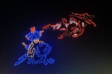 ハンティングアクションゲーム「モンスターハンターワイルズ」のドローンショーが12月18日~21日、ユニバーサル・ハーバーデッキ(大阪市此花区桜島1)で開催された。