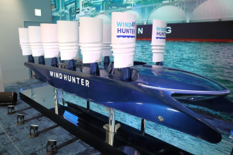 水素を作る船「ウインドハンター」の模型が2月6日から、船の体験型ミュージアム「ふねしる」(大阪市住之江区南港北2)で展示されている。