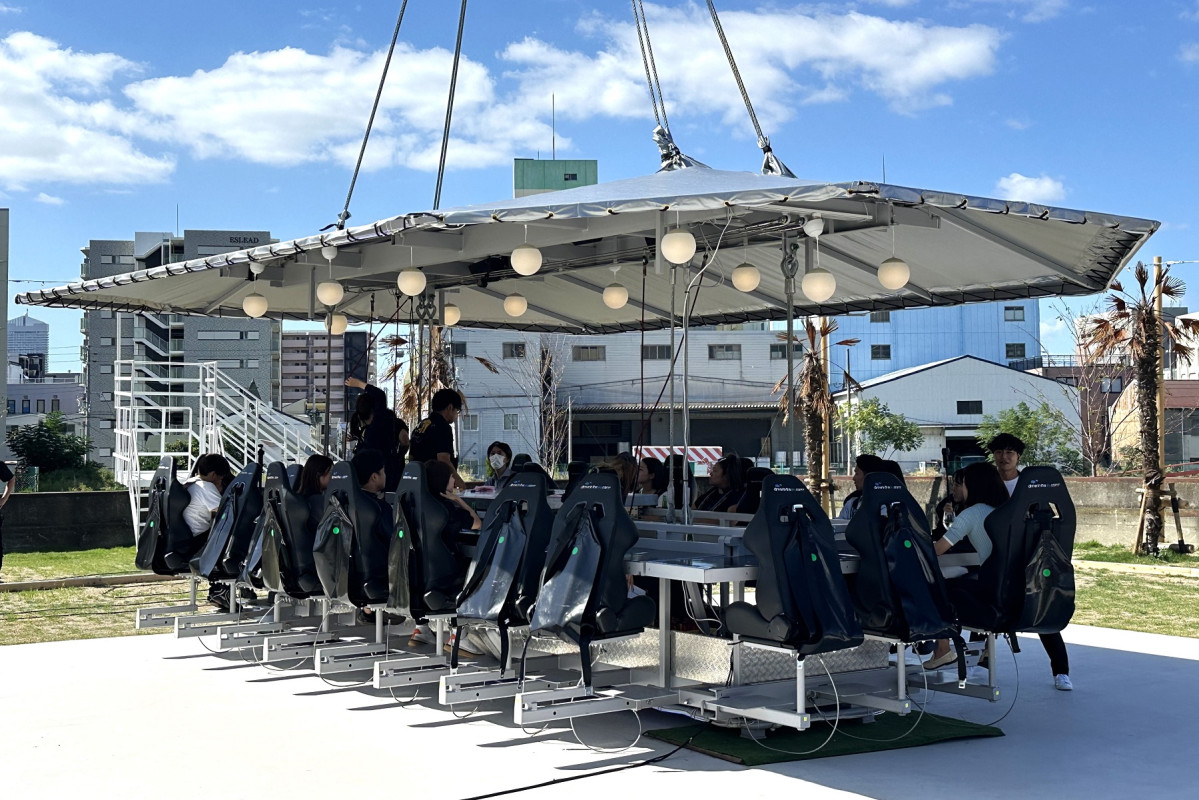 空中レストラン「Dinner in the Sky OSAKA(ディナーインザスカイオオサカ)」が10月10日から、安治川左岸の複合施設「中之島GATEサウスピア」で期間限定営業を行う。テーブルとイスが一体となったゴンドラ