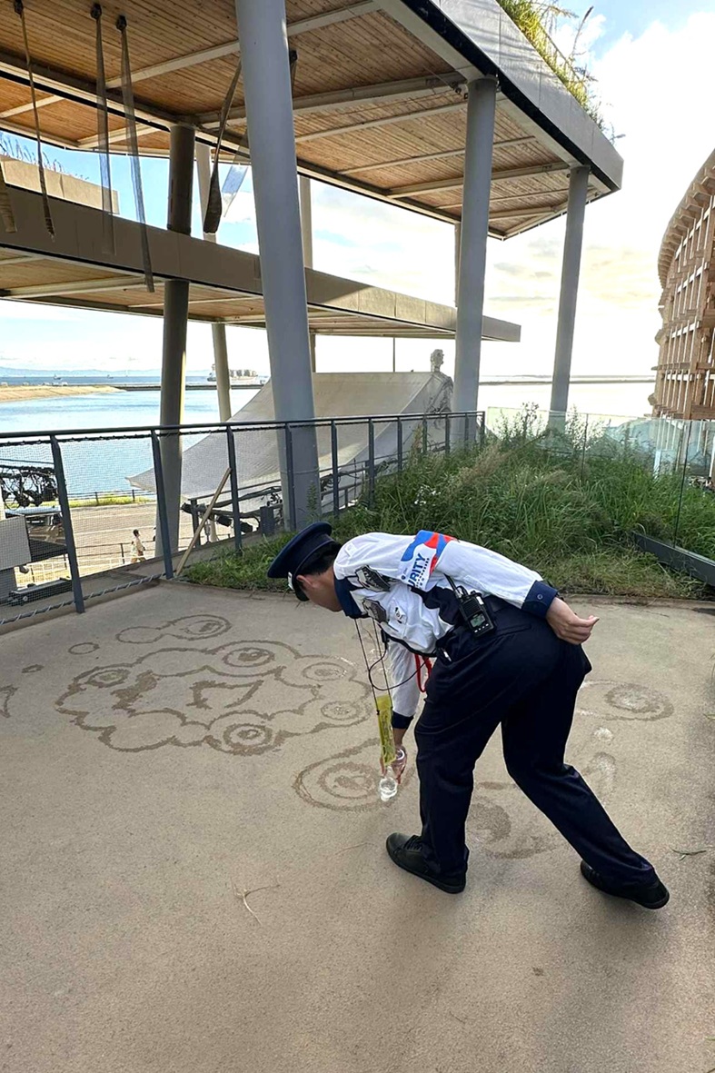 「レイガーデン」屋上、水でミャクミャク描くパフォーマンスも