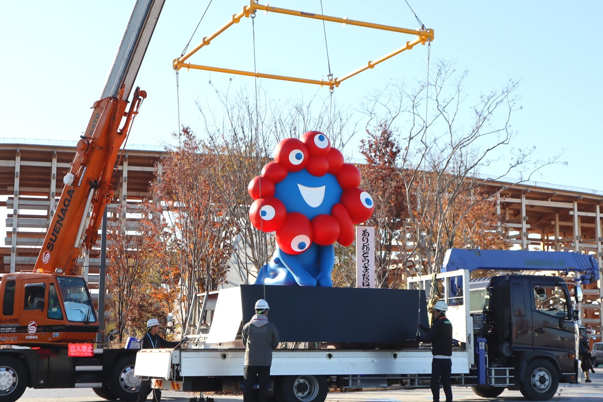2025年大阪・関西万博会場に設置されていた同万博公式キャラクター「ミャクミャク」のモニュメント移設に合わせたレモニーが11月29日、旧東ゲート近くで行われた。