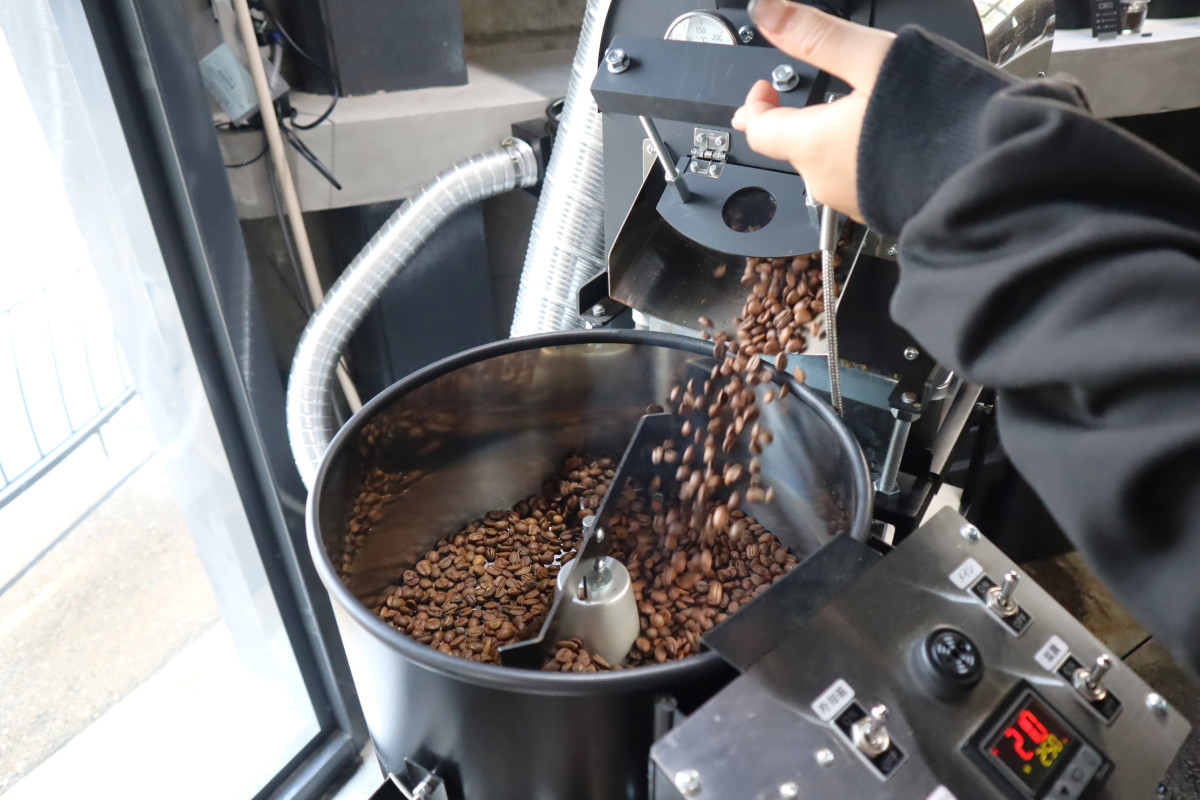 カフェ「螺旋珈琲」が大阪メトロ弁天町駅近くにオープンして半年がたった。焙煎を行う様子