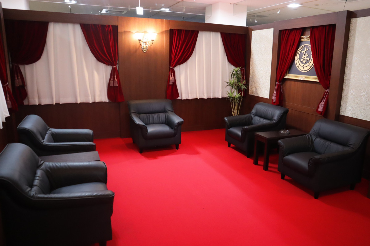 展覧会「20周年記念 『龍が如く』 冠婚葬祭展」が2月6日、大阪南港ATCギャラリーで始まった。「東城会本部」のフォトスポット©SEGA