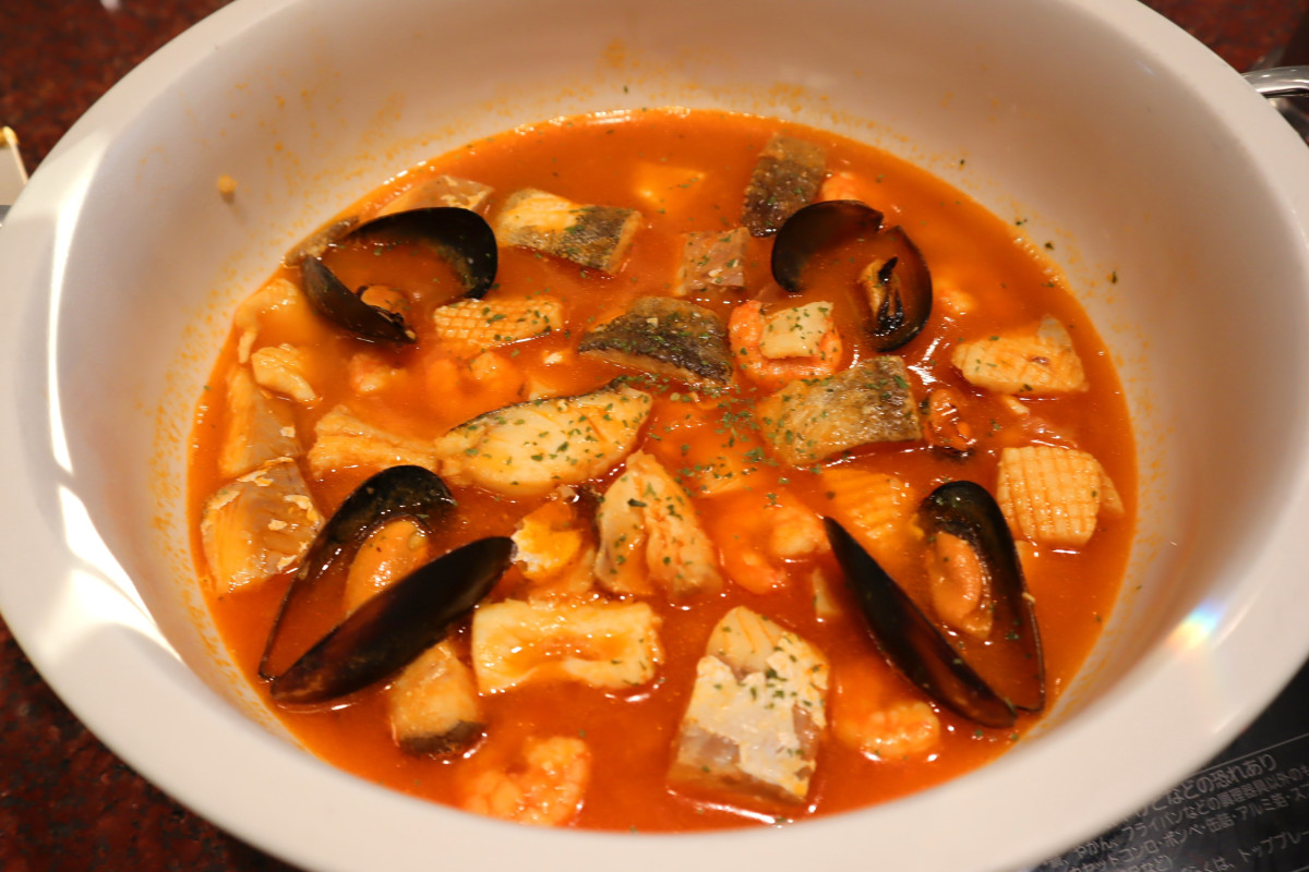 ディナービュッフェ「春のごちそうフェア」が現在、「ホテル ユニバーサルポート」2階「ポートダイニング リコリコ」で開催されている。ヒメダイをブイヤベースで煮込んだ「姫鯛のブイヤベース」