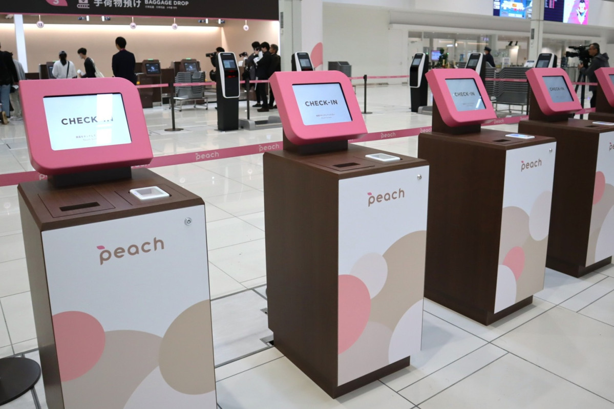 航空会社「Peach Aviation」が3月31日、リニューアルしたロゴや機体デザインを発表した。自動チェックイン機もデザインを刷新