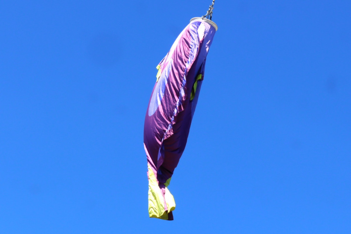 海遊館前イベント広場で4月11日、同館で展示している生物をかたどった「オリジナルのぼり」の装飾が始まった。青い体に黄色いひれが特徴の魚「ナンヨウハギ」