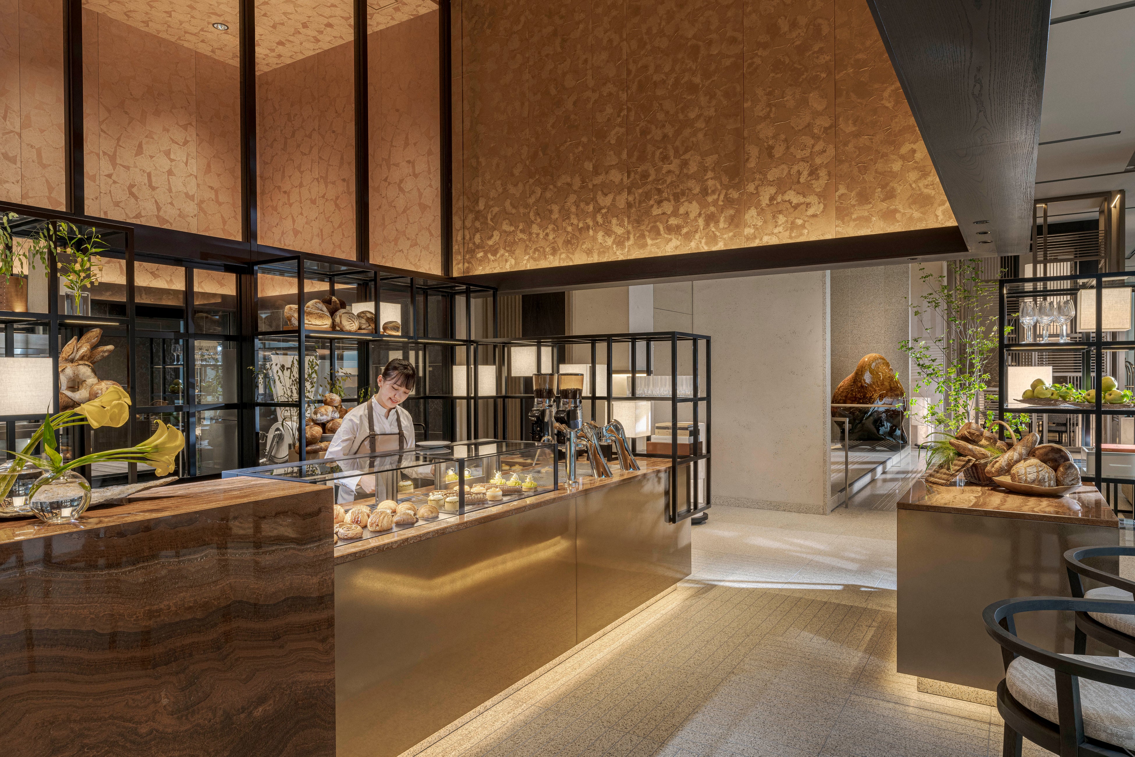 「フォーシーズンズホテル大阪」1階のロビーに隣接するベーカリーショップ。季節のペストリーや焼きたてパン、ケーキなどをテイクアウトのコーヒーと共にご用意。ご自宅にてホテルのお味を楽しめるオリジナル商品や、ギフトにも最適な焼き菓子などの商品も豊富に取り揃えております。
