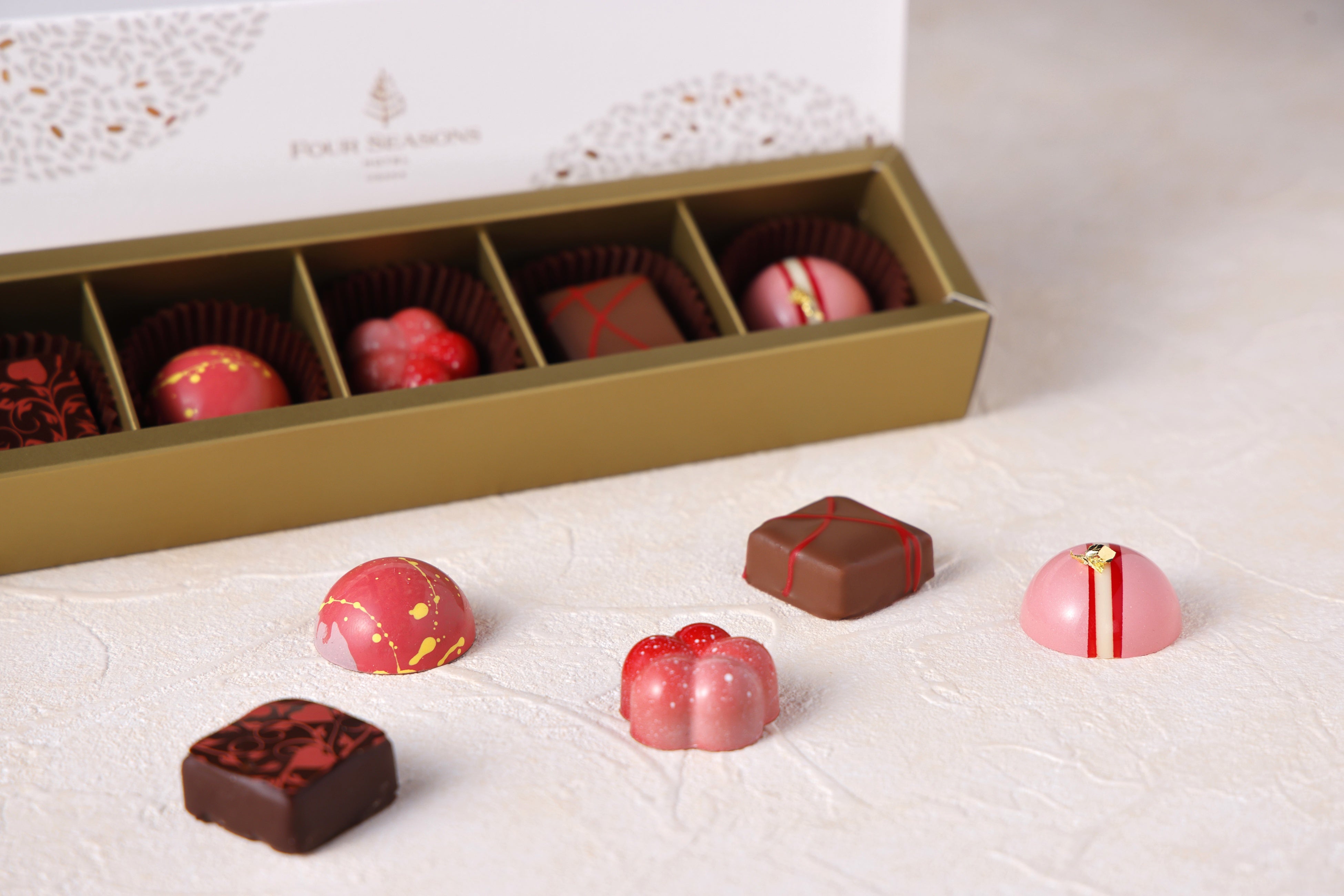 フォーシーズンズホテル大阪1階のベーカリーショップ「ファリーヌ」では、バレンタイン限定の特別なボンボンショコラをご用意いたします。古来より日本で信じられてきた香りの力をテーマに、専属ショコラティエがひと粒ひと粒に日本ならではの癒しのエッセンスを込め、忙しい日常にそっと寄り添うチョコレートギフトをお届けします。一足早く春を感じるような色合いのチョコレートは、大切な方への贈り物はもちろん、ご自身へのご褒美にもおすすめです。