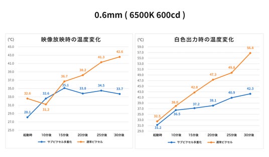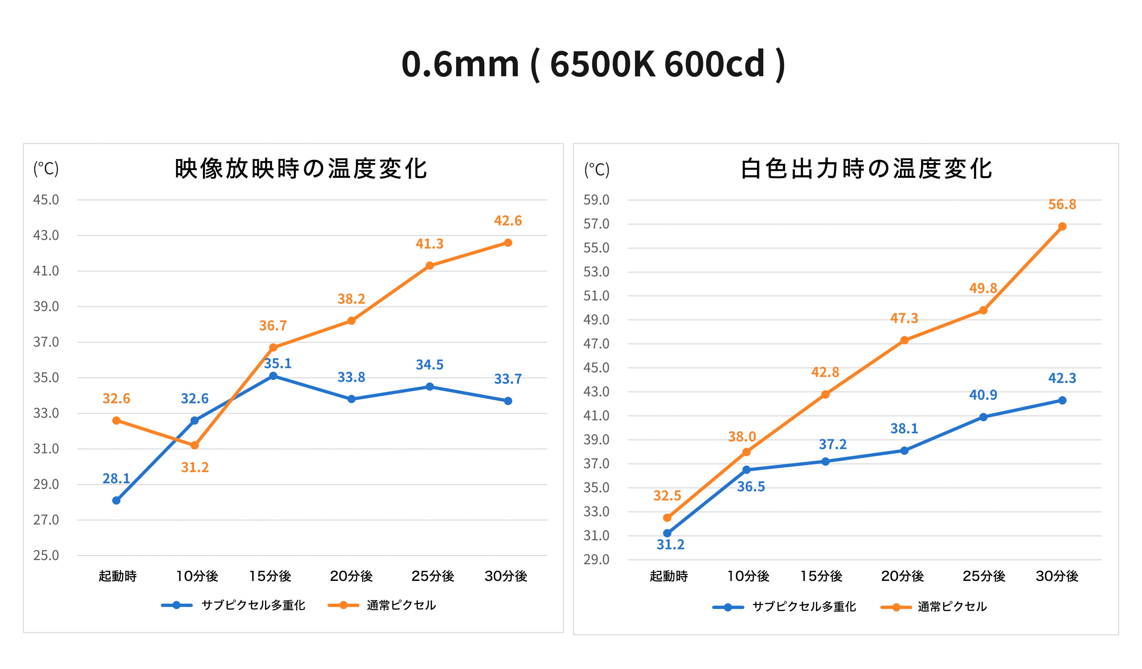 サブピクセル多重化技術は、低発熱で周囲の温度に差が出る
